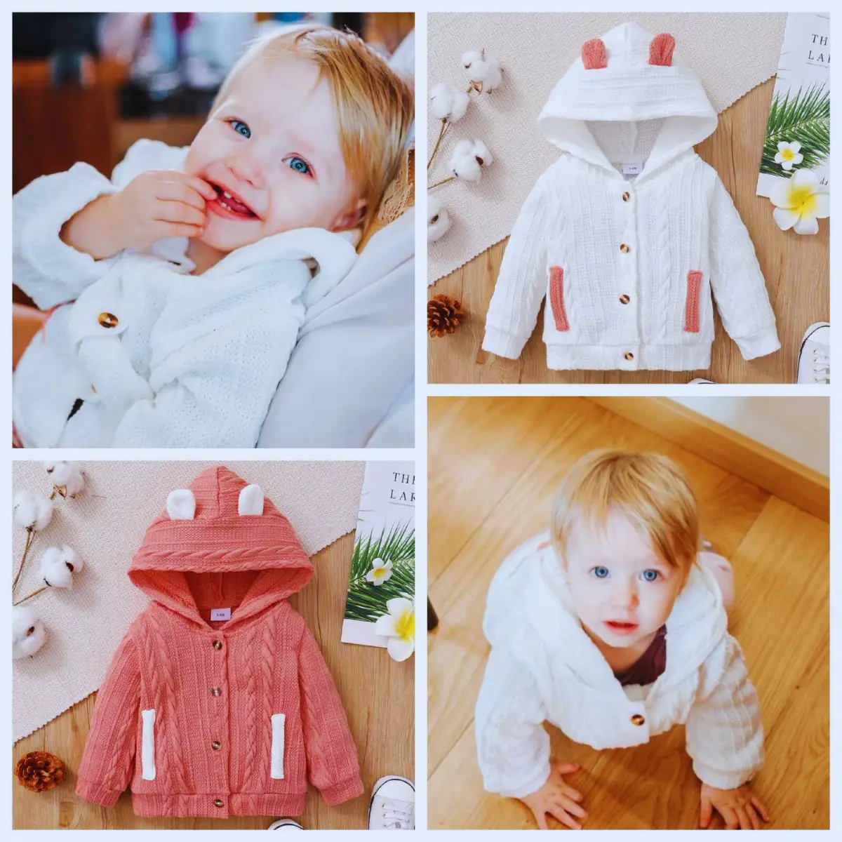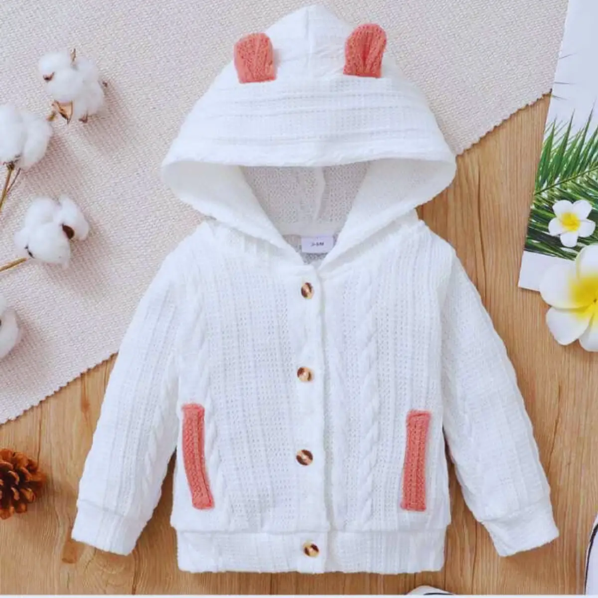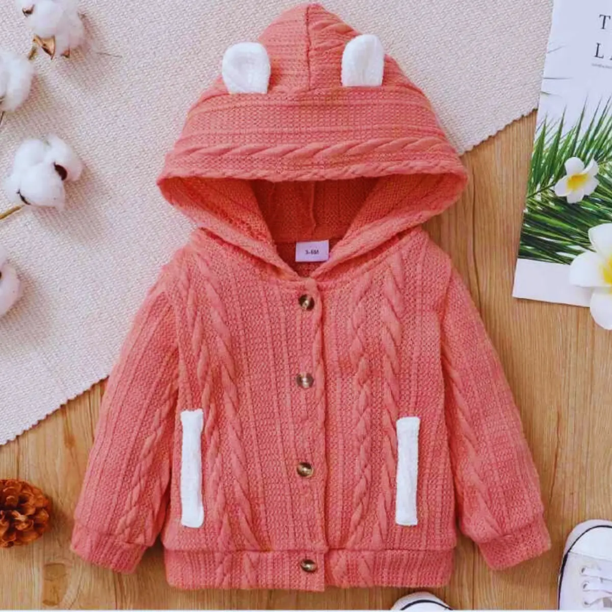 Ljubka otroška pletena jopa s kapuco je narejena iz 100% mehkega bombaža, ki zagotavlja toplino in udobje v hladnejših dneh.