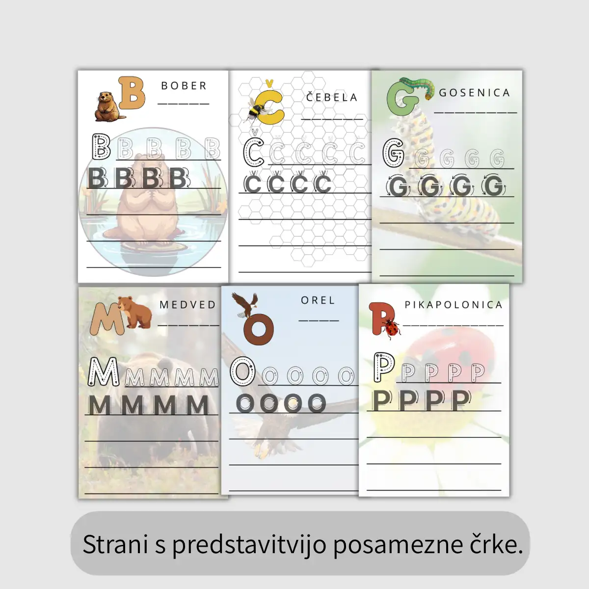 Za zabavno učenje pisanja velikih tiskanih črk slovenske abecede.