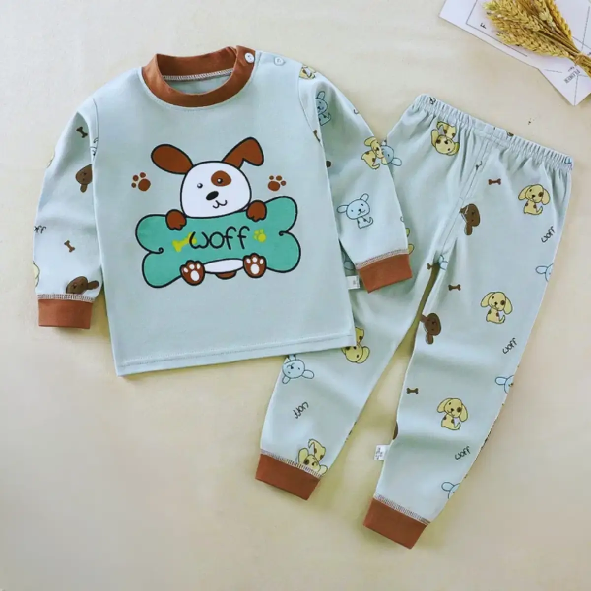 Mehka pižamica iz 100% bombaža v mint barvi z ljubkim motivom kužka in napisom woff.