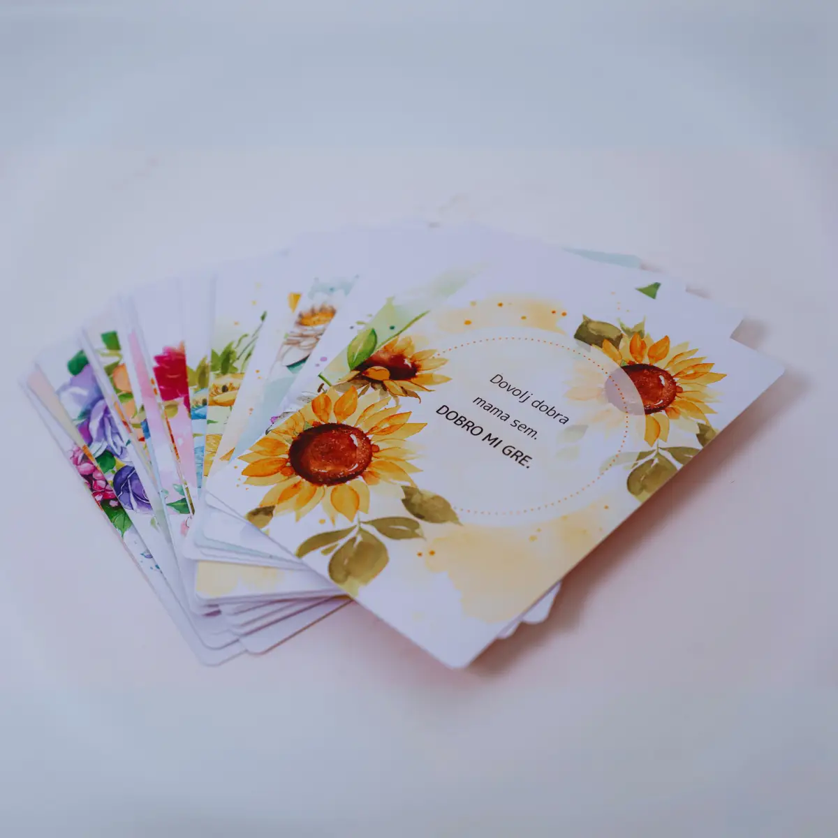 𝟑𝟗 𝐤𝐚𝐫𝐭𝐢𝐜 (35 afirmacijskih, 2 za mejnike in 2 za personalizirane zapise).