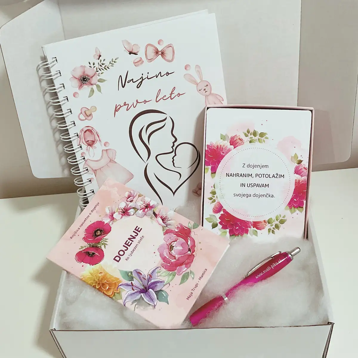 “𝑫𝒐𝒋𝒆𝒏𝒋𝒆 𝒋𝒆 𝒅𝒂𝒓 𝒏𝒂𝒓𝒂𝒗𝒆, 𝒂 𝒕𝒖𝒅𝒊 𝒗𝒆šč𝒊𝒏𝒂, 𝒌𝒊 𝒔𝒆 𝒋𝒆 𝒏𝒂𝒖č𝒊𝒕𝒂 𝒕𝒊 𝒊𝒏 𝒕𝒗𝒐𝒋 𝒅𝒐𝒋𝒆𝒏č𝒆𝒌 𝒔𝒌𝒖𝒑𝒂𝒋,” pravi Maja. Njene kartice in knjižica so namenjene prav temu – da podprejo vsako mamico na tej posebni poti.