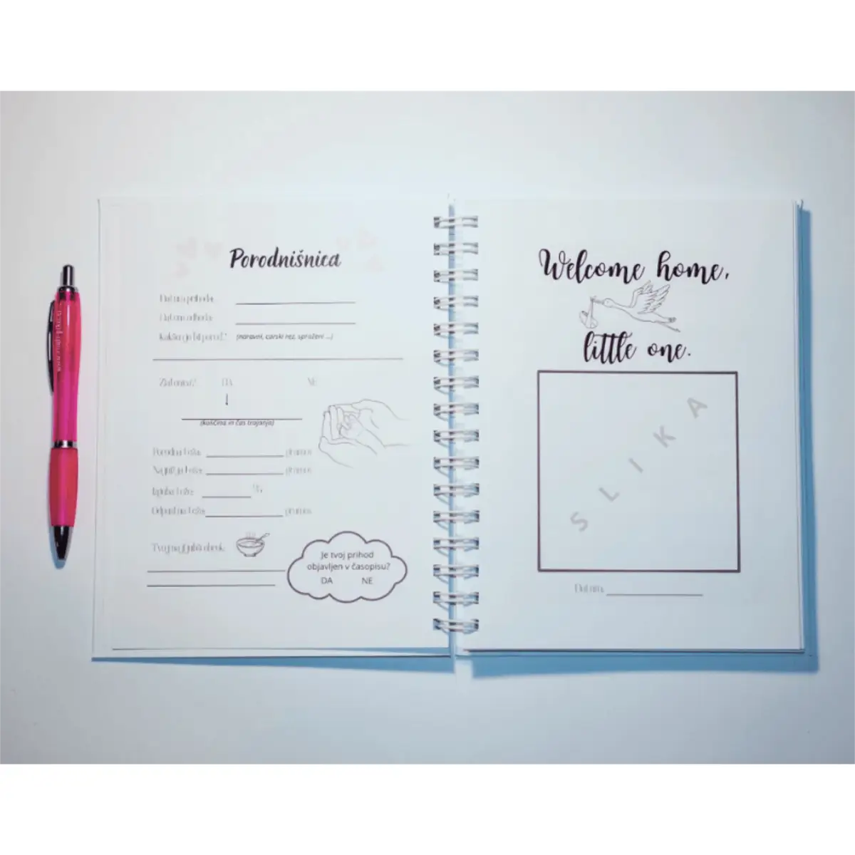 Je odličen sopotnik na vajini skupni poti, kamor si boš lahko pomembne podatke iz časa porodnišnice in vse do vstopa v vrtec zabeležila v ta planer.
