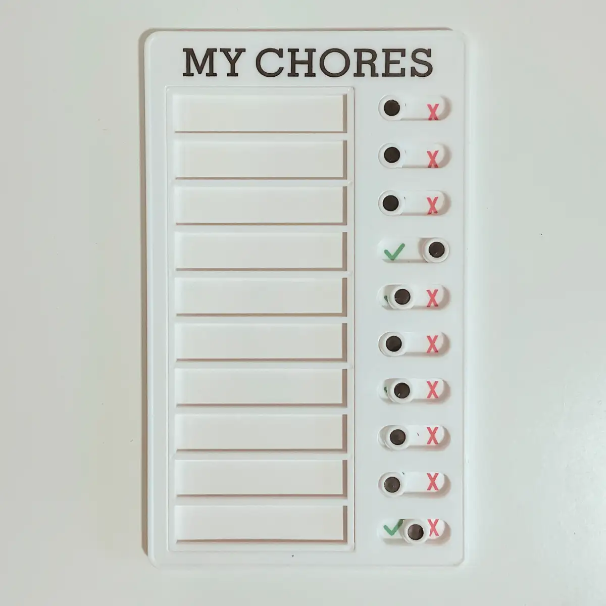 Ta enostaven sistem pomaga otrokom organizirati svoje vsakodnevne naloge na igralen in poučen način, hkrati pa spodbuja odgovornost in samostojnost.