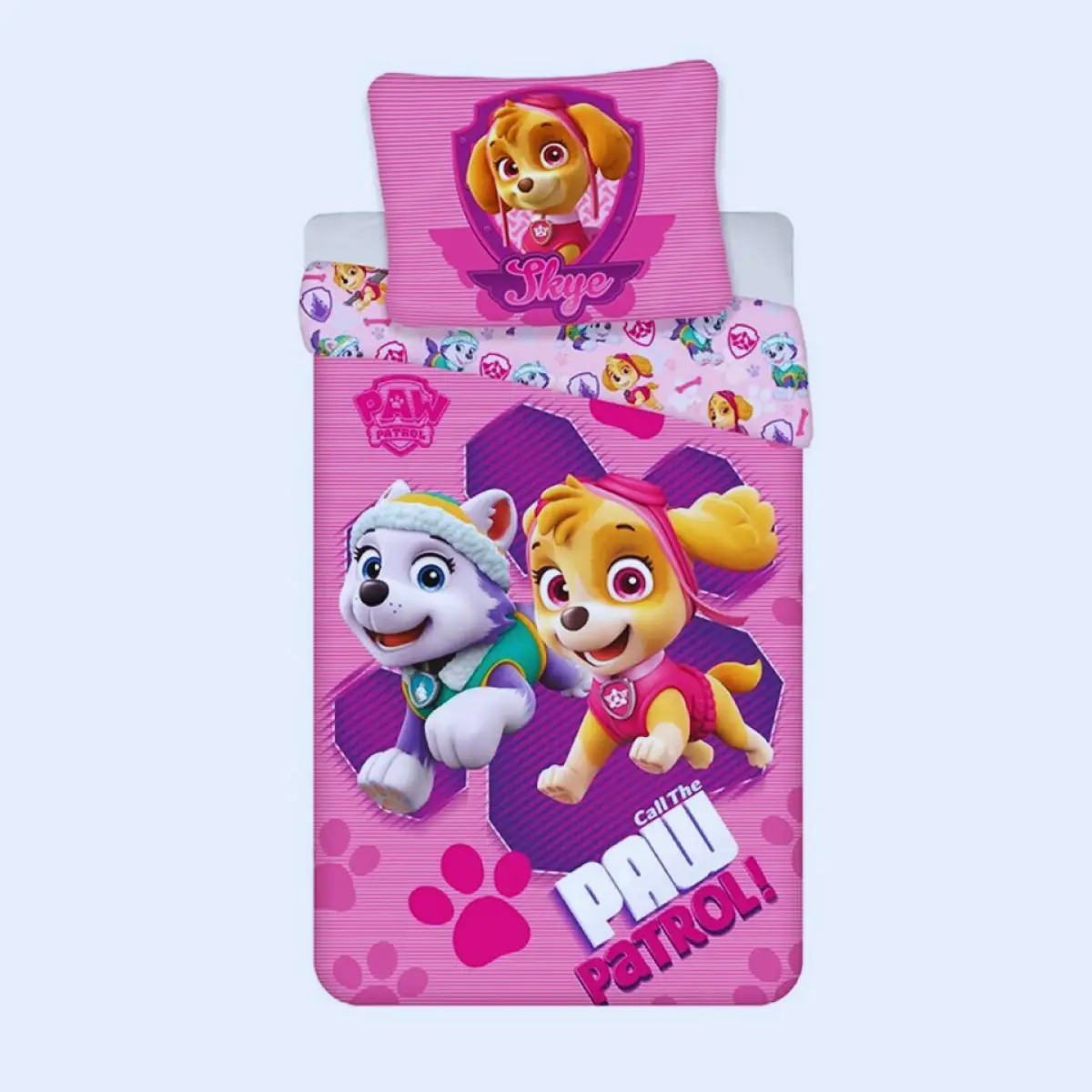 Veseli motivi Tačk na Patrulji: Posteljnina je okrašena z liki in motivi priljubljenih junakov, kot sta Sile in Everest iz serije Tačke na patrulji, kar bo navdušilo male oboževalce.