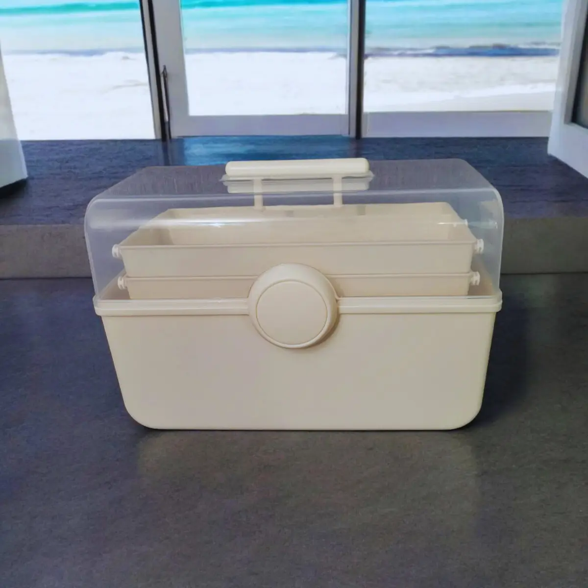Organizator domače mini lekarne je praktična škatla z več predelki, kjer lahko varno in pregledno shranite zdravila, sirupe, termometer in druge nujne pripomočke.